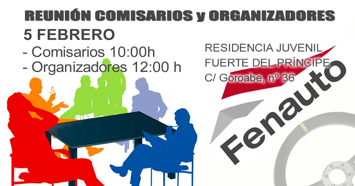 La reunión con los COMISARIOS dará comienzo a las 10 horas y la de ORGANIZADORES está prevista a las 12 horas.